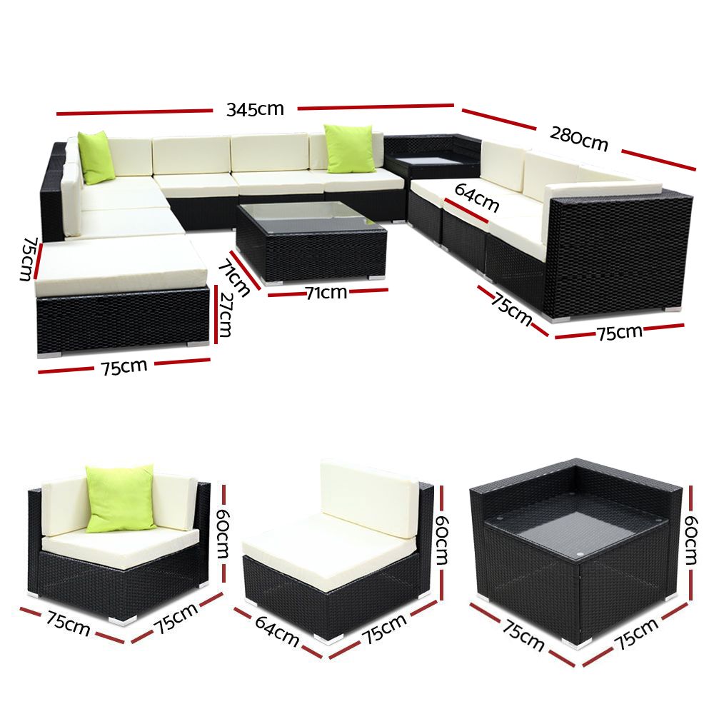 Gardeon 12 Piece Outdoor Furniture Set Wicker Sofa Lounge