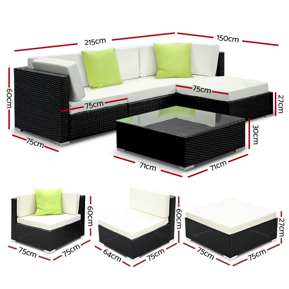 Gardeon 5 Piece Outdoor Furniture Set Wicker Sofa Lounge